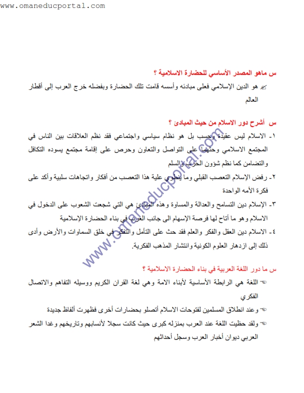 ملخص الوحدة الاولي أصول الحضارة الإسلامية وخصائصها في مادة التاريخ للصف الحادي عشر من الفصل الدراسي الاول وفق مناهج سلطنة عمان مع ملخص وشرح كامل.