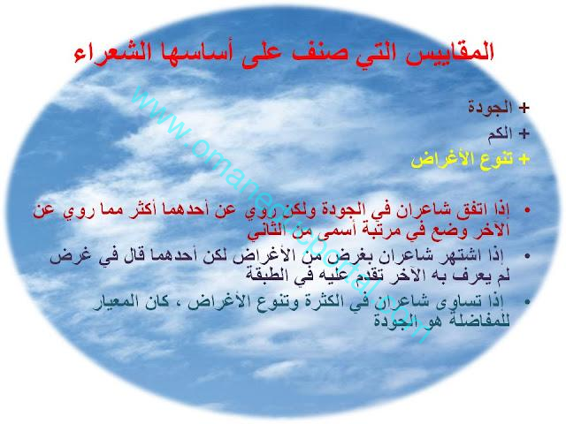 شرح درس طبقات فحول الشعراء في اللغة العربية للصف الحادي عشر الفصل الاول